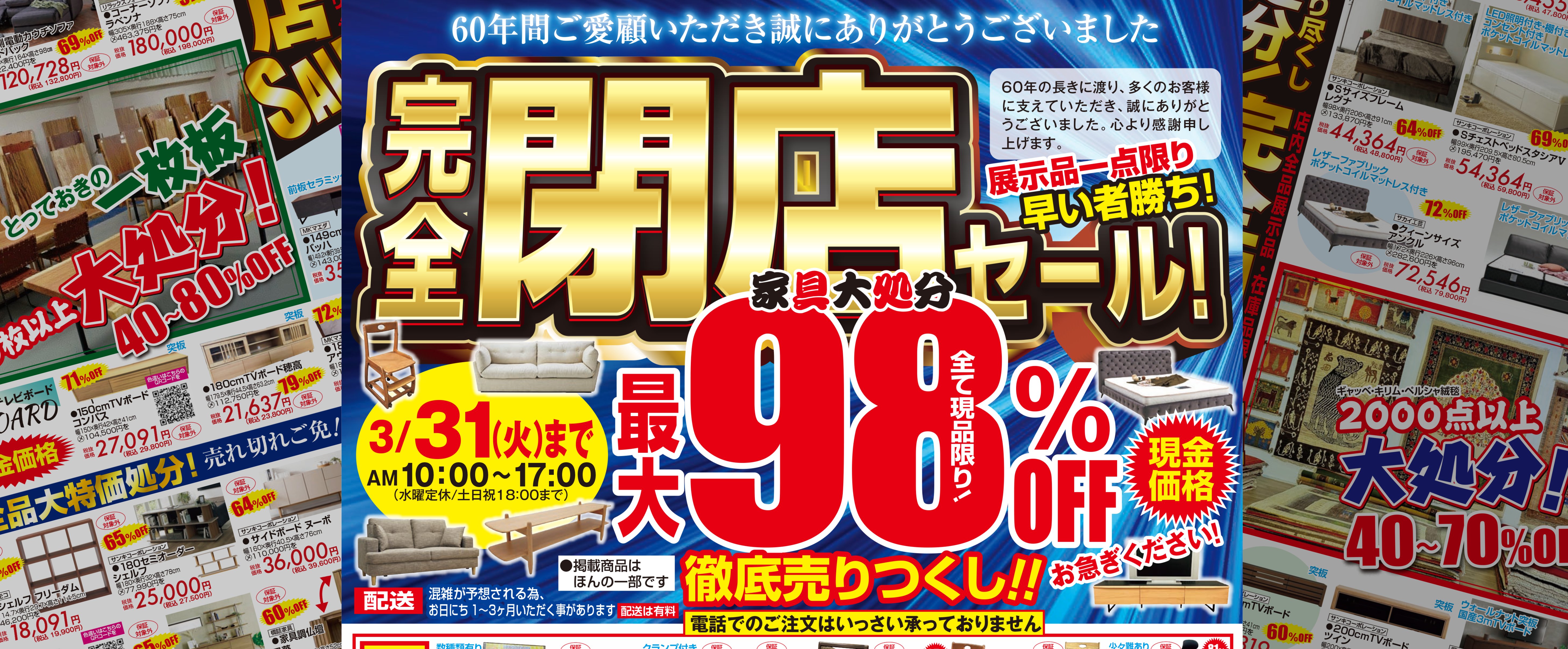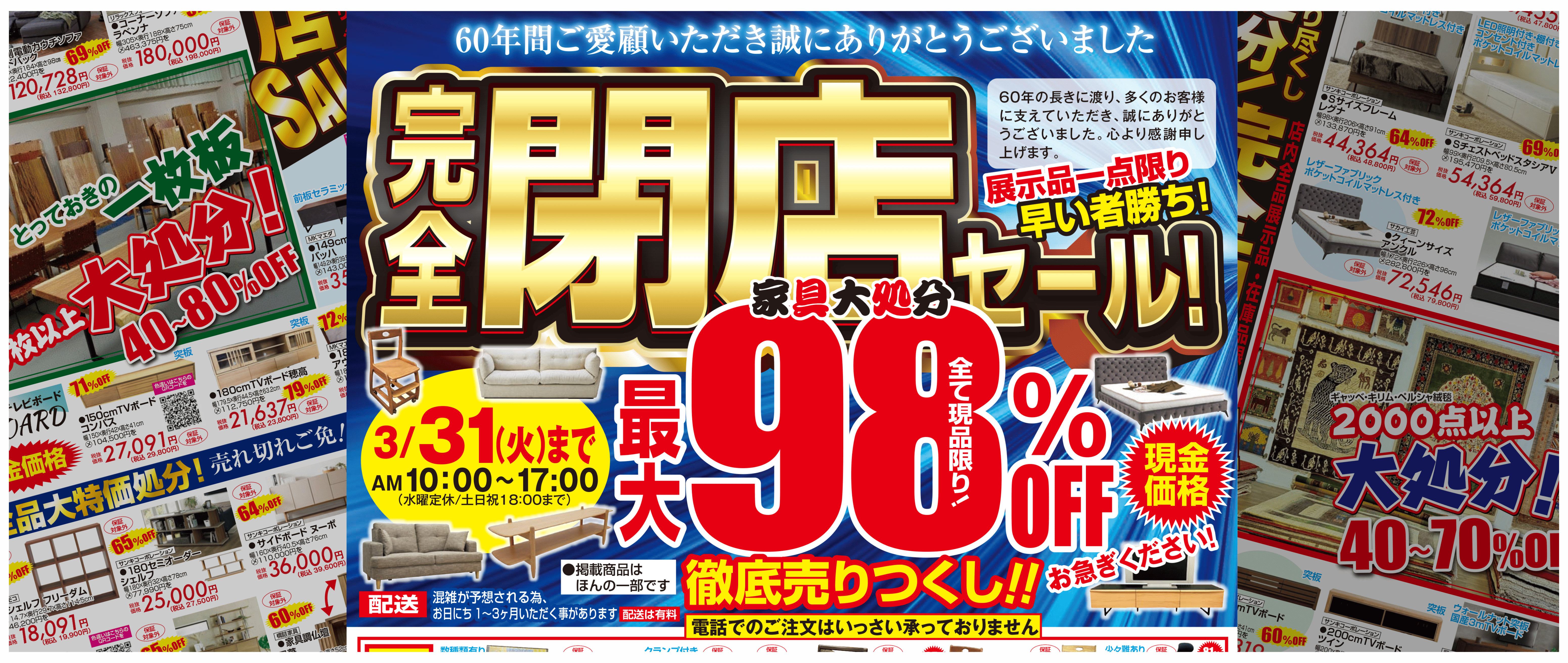 感謝をこめた売り尽くしの「完全閉店セール」を